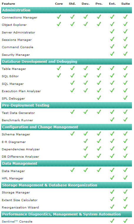 o Core Edition o Standard Edition o Developer Edition o Professional Edition (includes SPL Debugger) o Enterprise Edition o Suite Edition (includes SPL Debugger)